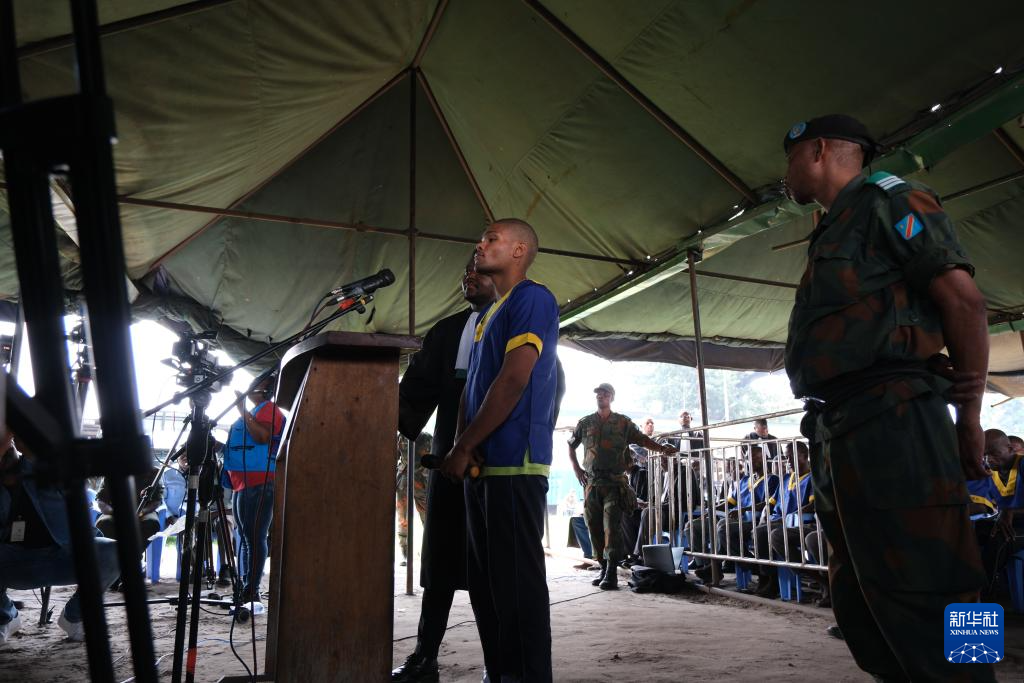 6月7日,在刚果(金)首都金沙萨一法庭,嫌疑人出席庭审。