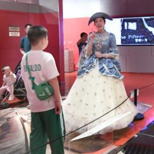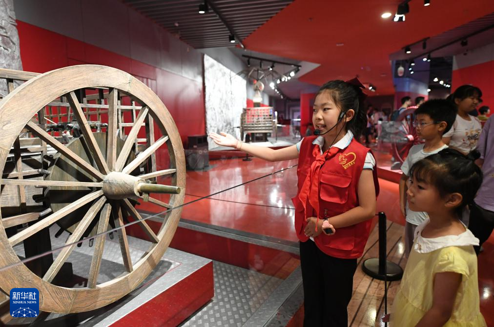 6月8日,在北京汽车博物馆,“小小讲解员”为观众介绍展品。