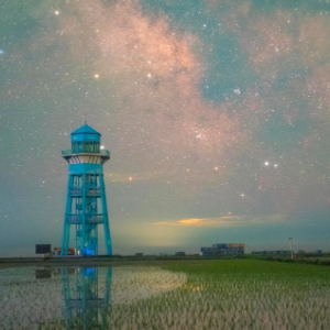 这是星空下的黑龙江省佳木斯富锦市万亩水稻公园(6月1日摄)。