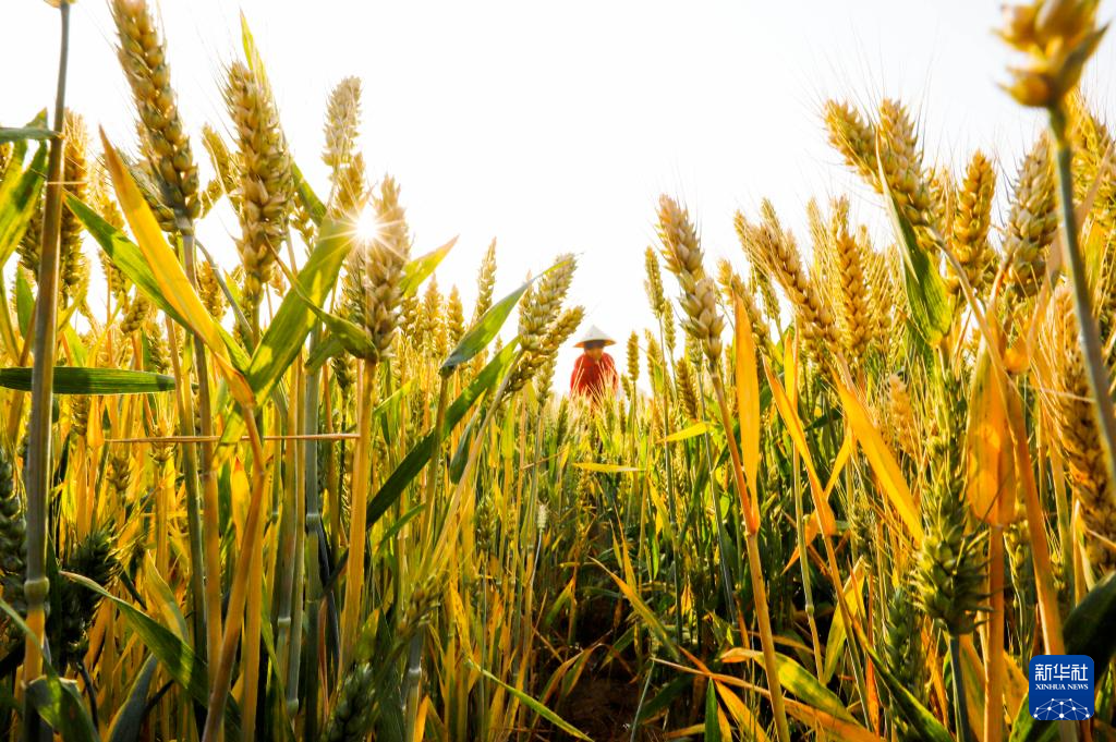 6月4日,河北省遵化市刘备寨乡泉水头村农民在麦田劳作。