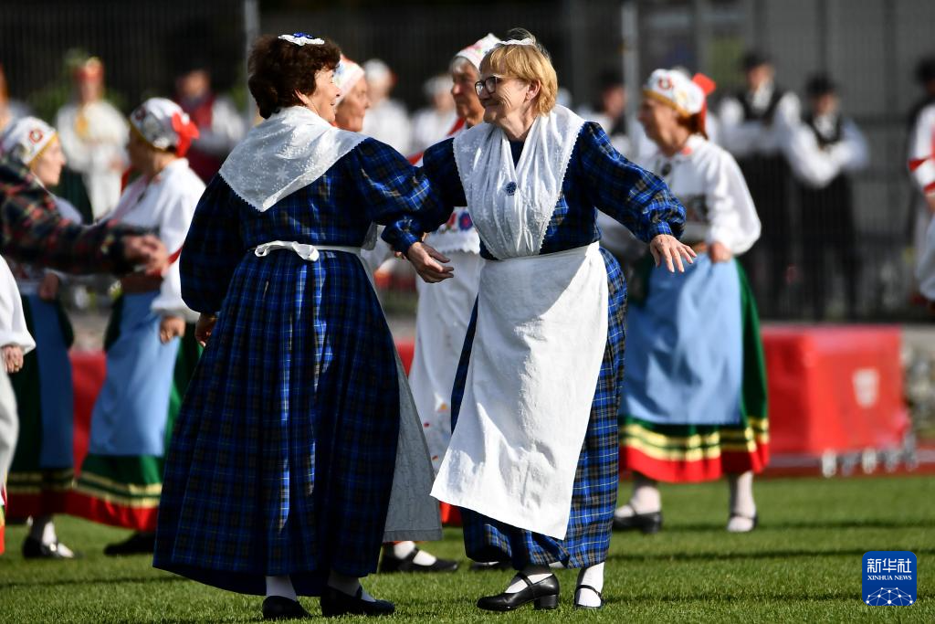当日,爱沙尼亚约赫维举行舞蹈庆典,来自约100个舞蹈团体的1200余名舞者参与了活动。
