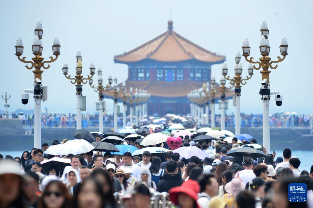 6月9日,游客在山东省青岛市栈桥景区观光游览。