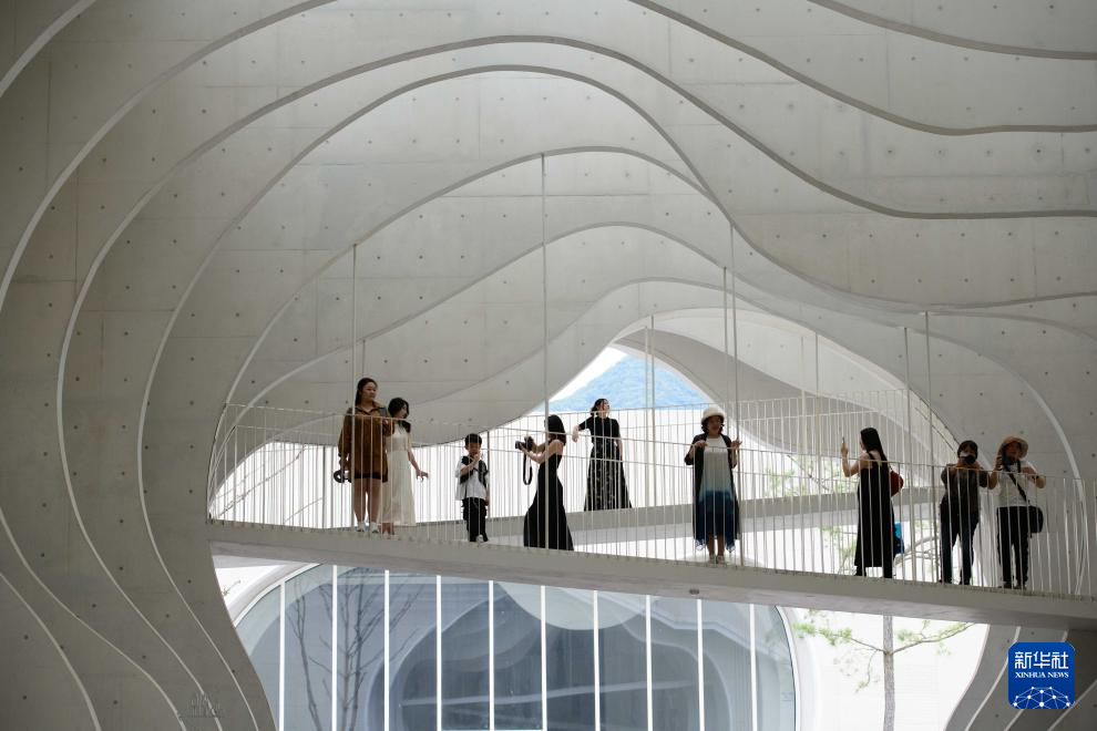 6月9日,游客在位于安徽省宣城市泾县的中国宣纸文化园内参观。