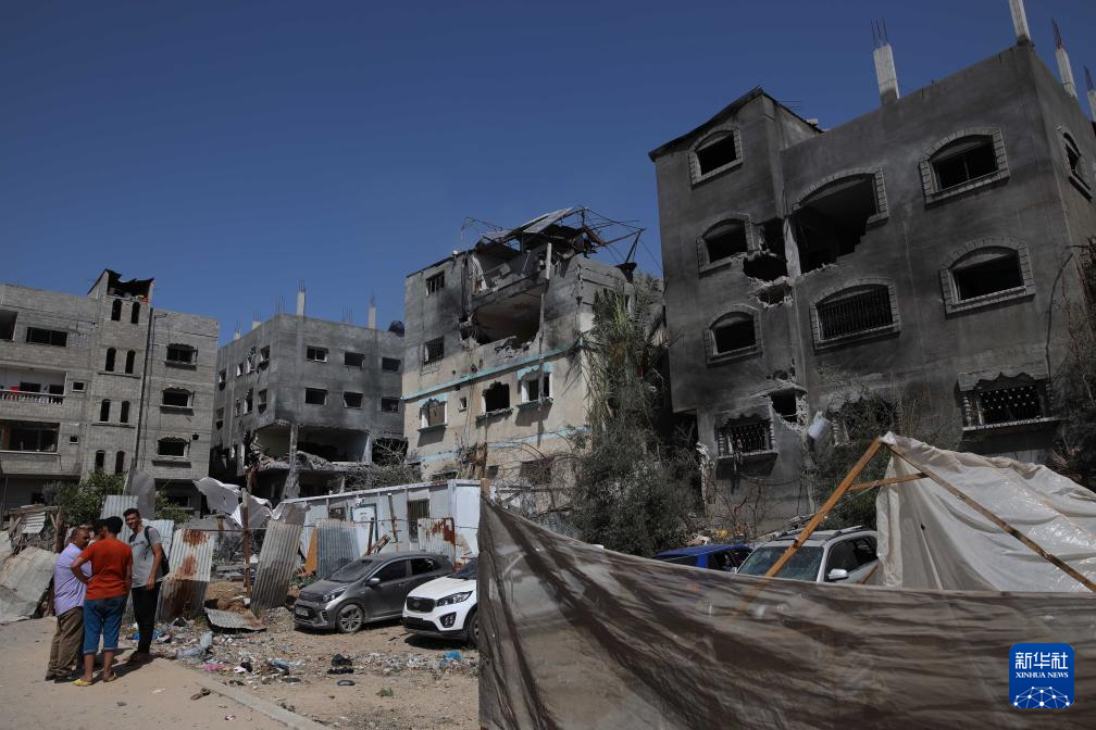 这是6月8日在加沙地带中部努赛赖特难民营拍摄的在以军袭击中受损严重的房屋及车辆。