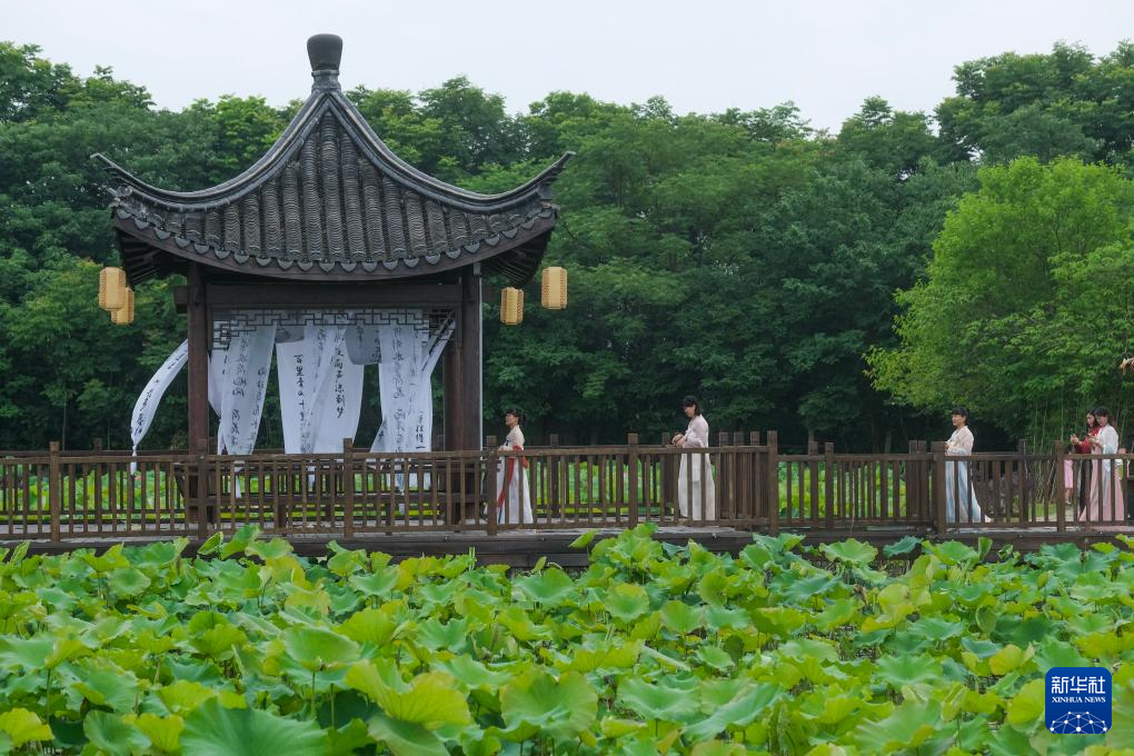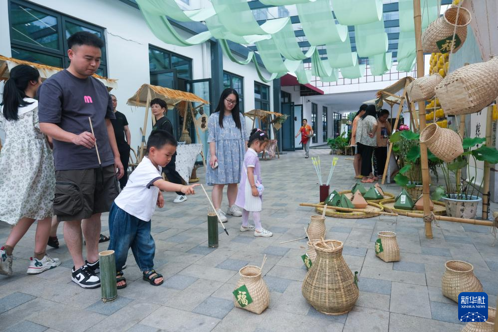 端午假期,浙江省桐乡市洲泉镇马鸣村举办“国风端午”特色民俗活动,活动现场设置投壶、旱地龙舟、乡村国风音乐会等体验活动以及端午香包、传统糕点等展示售卖,将特色民俗和乡村旅游融合起来,让游客体验江南端午民俗以及夏日荷塘美景,欢度假期。