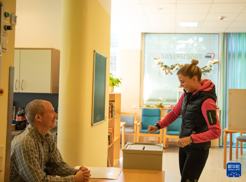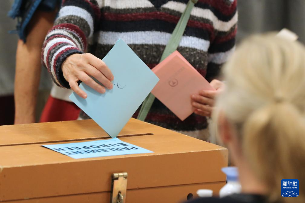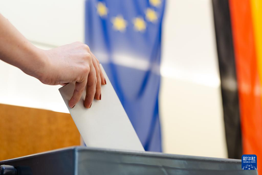 6月9日,选民在德国首都柏林的一处投票站投票。