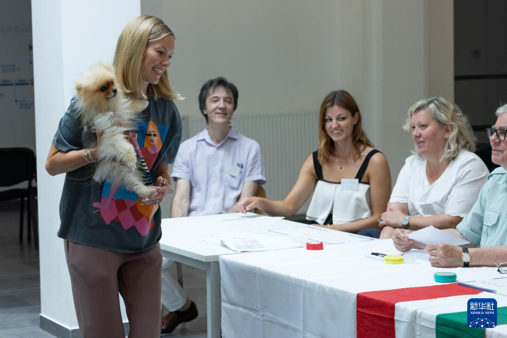 6月9日,匈牙利选民在布达佩斯的一处投票站投票。