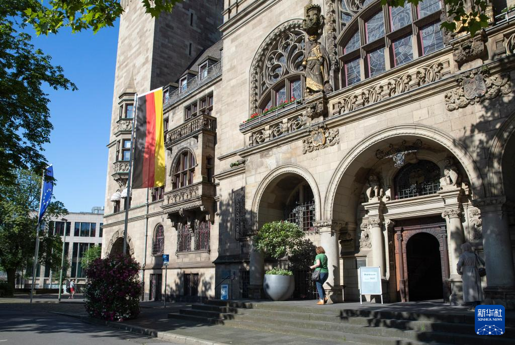 6月9日,选民走出德国杜伊斯堡市政厅的投票点。