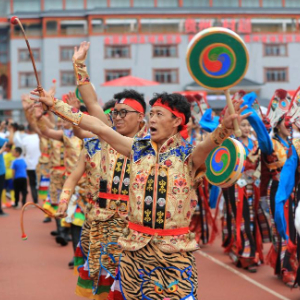 6月10日,演员在比赛间隙表演萨迦索舞。