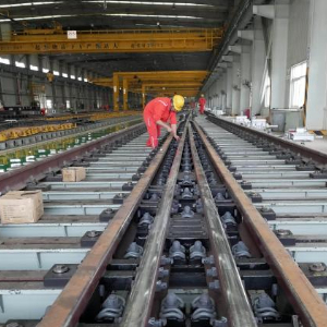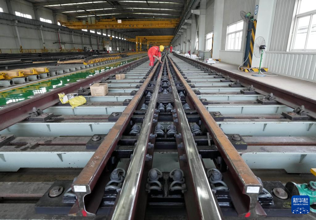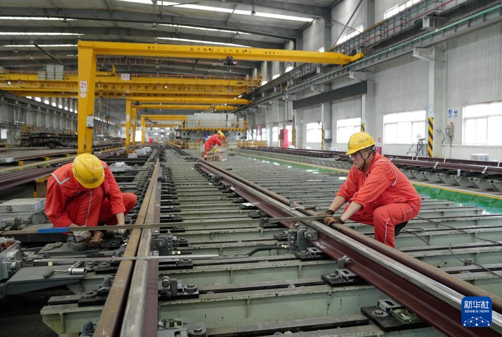 近日,随着国内一些重要铁路及地铁项目有序推进,承接铁路道岔生产任务的河北省秦皇岛市山海关区中铁山桥集团有限公司生产车间内一派繁忙,工人们正保质保量加紧生产,助力中国铁路交通建设。中铁山桥始创于1894年,生产的道岔产品远销30多个国家和地区。
