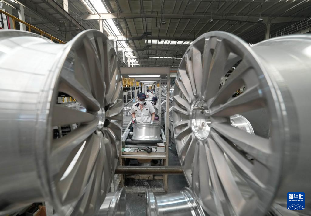 6月11日,工人在河北秦皇岛经济技术开发区一家车轮企业的生产车间工作。