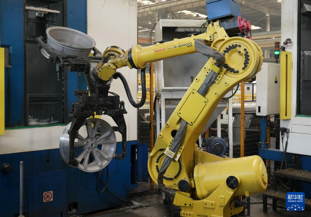 6月11日,河北秦皇岛经济技术开发区一家车轮企业的机器人在工作中。