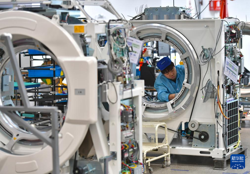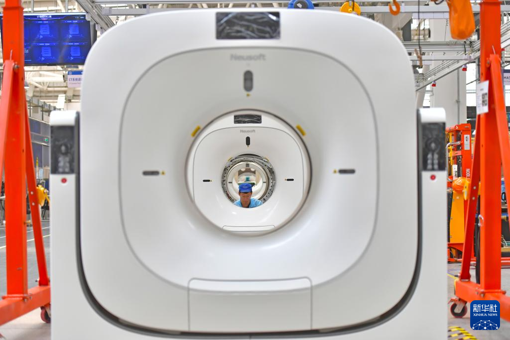 5月22日,东软医疗系统股份有限公司员工在生产CT机。