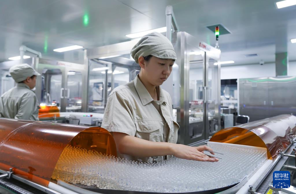 5月27日,在辽宁方大集团东北制药智能化生产车间,企业员工在生产药品。