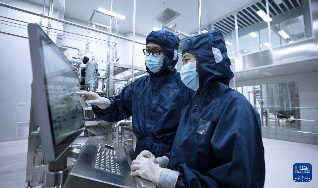 工艺工程师在北方药谷德生生物医药产业园一期抗体原液车间工作(资料照片)。