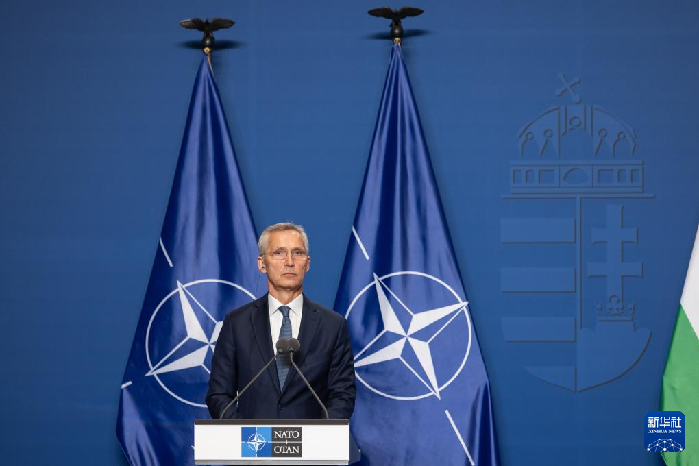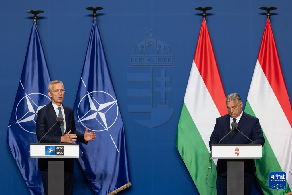 6月12日,在匈牙利布达佩斯,北约秘书长斯托尔滕贝格与匈牙利总理欧尔班(不在图片中)出席联合记者招待会。