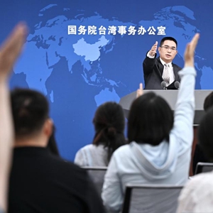 6月12日,国台办发言人陈斌华邀请记者提问。当日,国务院台湾事务办公室在北京举行例行新闻发布会。新华社记者 陈晔华 摄