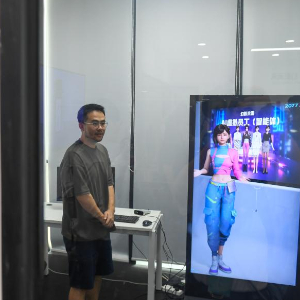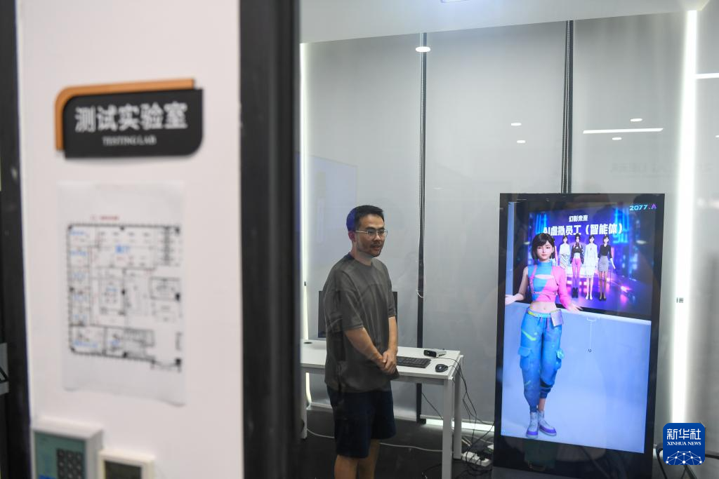 6月12日,在深圳前海深港青年梦工场,工作人员在幻影未来公司的测试实验室与AI进行交互测试。