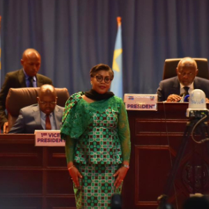 6月11日,在刚果(金)首都金沙萨,朱迪丝·苏米努瓦·图卢卡在国民议会上发言。