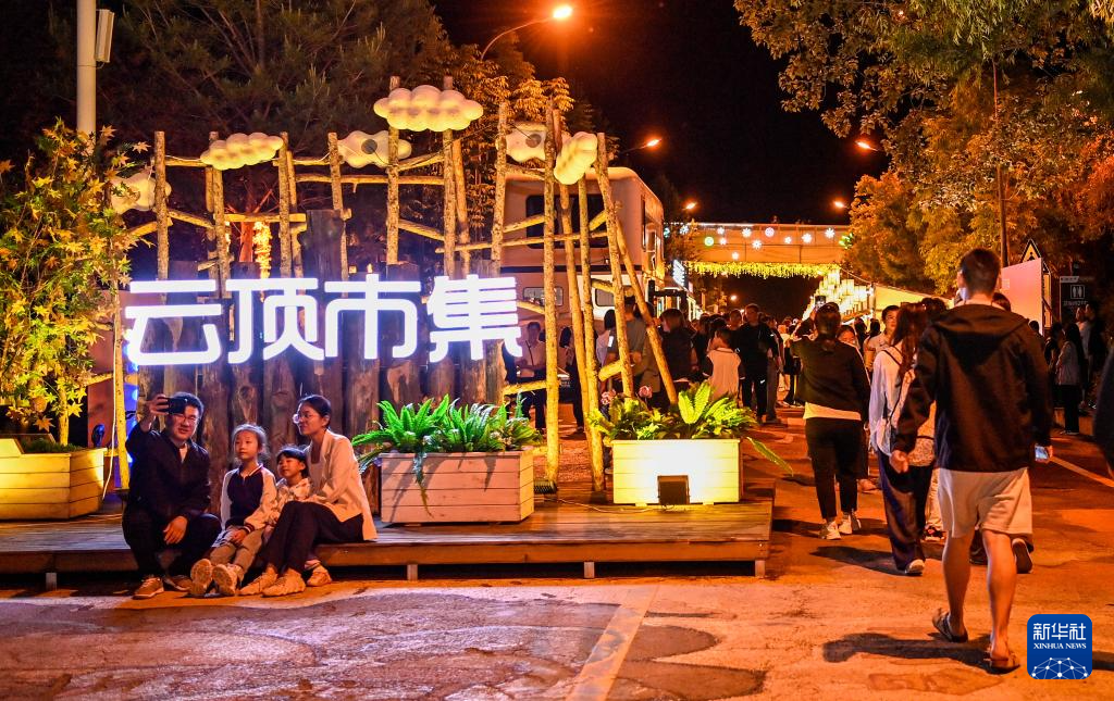 6月13日,游客在二道白河镇的云顶市集游玩。
