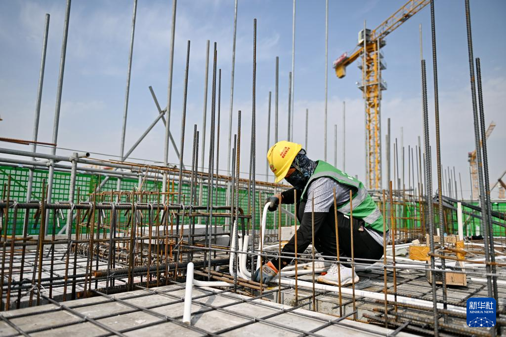 6月13日,中铁十二局工人在雄安新区大河片区安置房及配套设施项目建设现场施工。