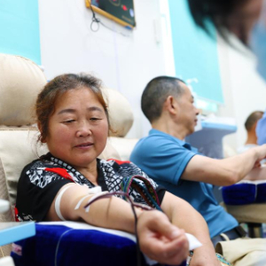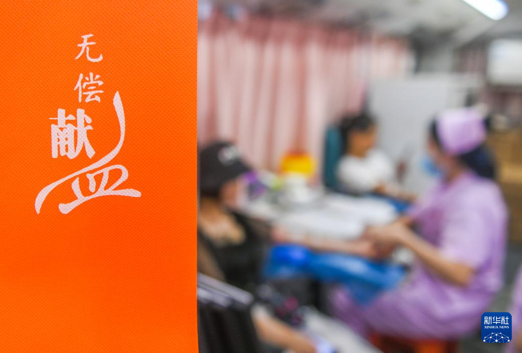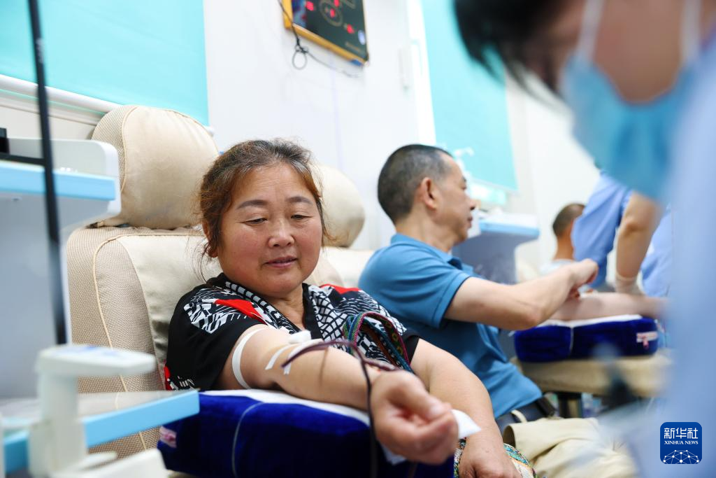 6月14日,市民在重庆市黔江区献血爱心屋无偿献血。