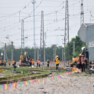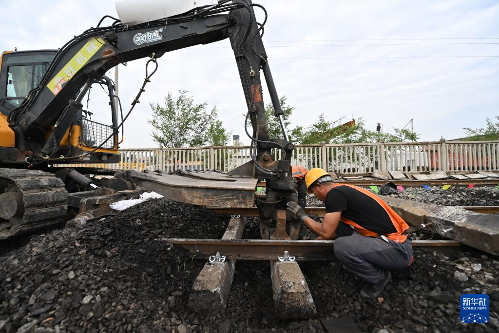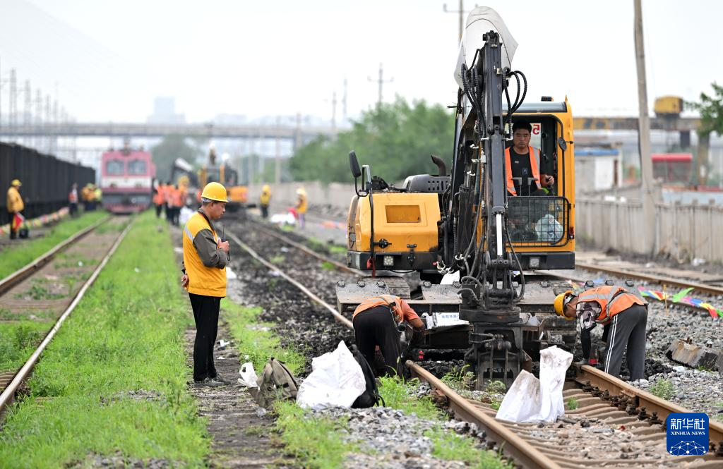 近日,中国铁路北京局集团有限公司天津工务段在位于天津市北辰区的南仓站开展站场股道设备综合整修作业。此次作业计划利用24天的时间,约400人的施工队伍将对南仓站上行出发场的12股铁道进行彻底改造,通过道床清筛、更换轨枕、捣固线路等提升线路设备质量。