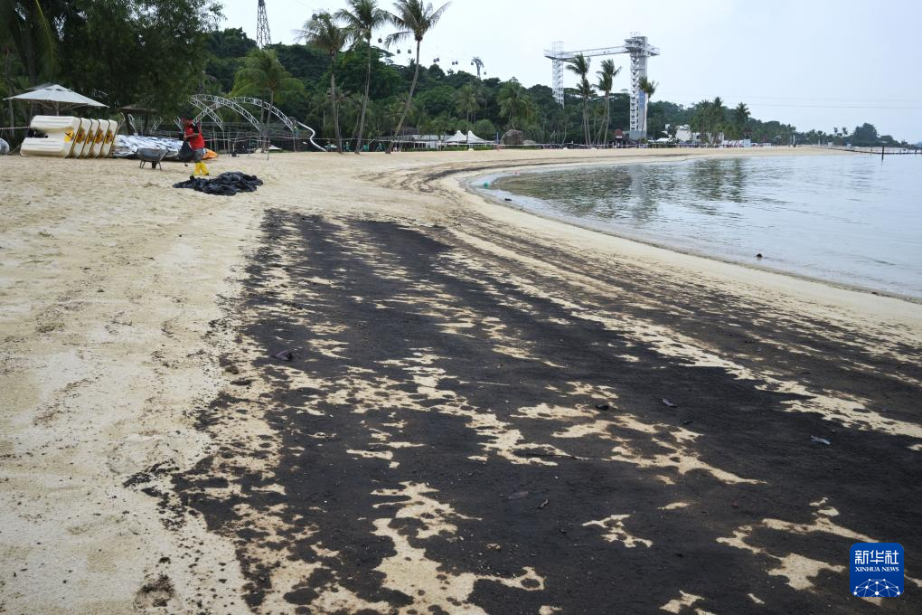 石油泄漏导致新加坡海滩污染-新华网