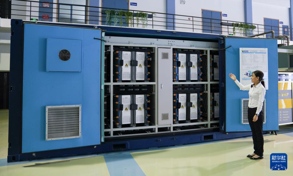 6月15日,工作人员在大连融科储能技术发展有限公司介绍全钒液流电池系统。大连融科储能技术发展有限公司致力于全钒液流电池储能技术创新和应用探索,拥有国际、国内技术专利300余项,产品广泛应用于电网调峰、可再生能源并网、工商业微网等领域。