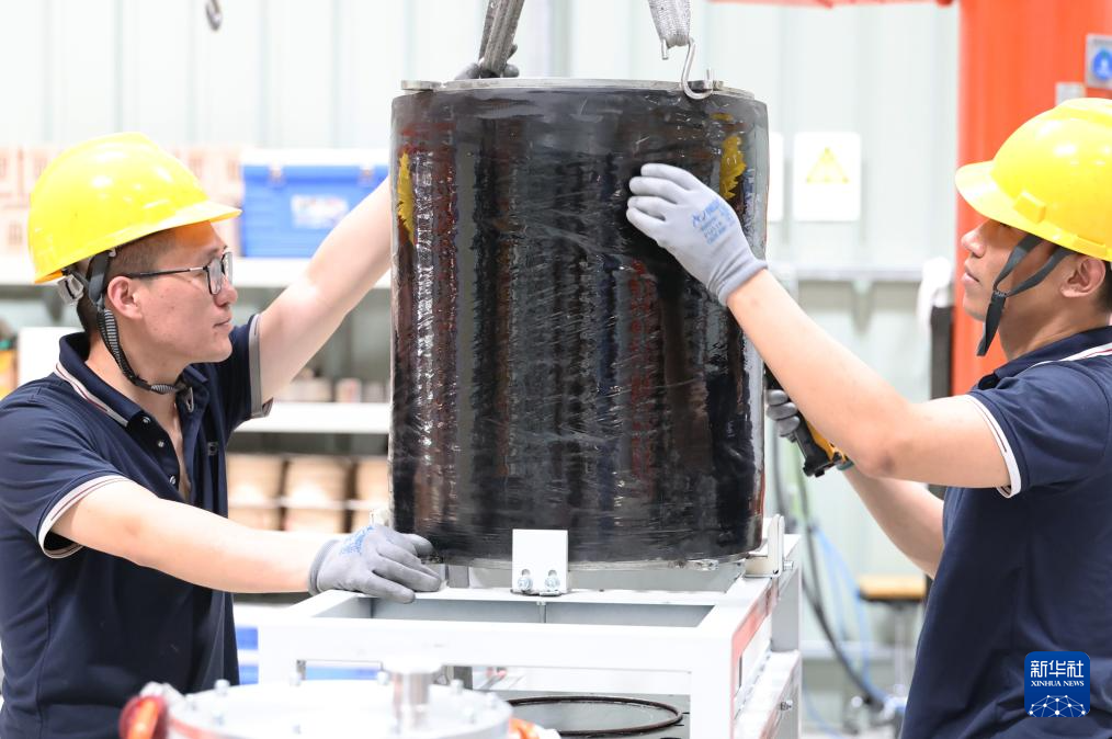 6月13日,沈阳微控飞轮技术股份有限公司工人在进行组装工作。沈阳微控飞轮技术股份有限公司成立于2018年,深耕飞轮储能领域,以磁悬浮飞轮技术成为一家“独角兽”企业,其产品最高转速可达41000转/分钟。