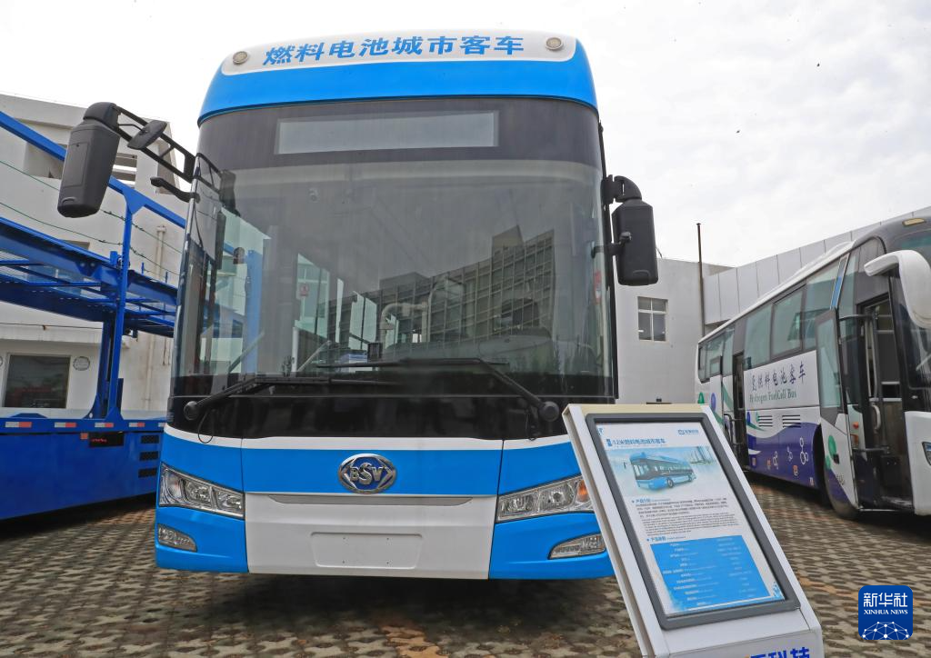 6月14日在洺源科技(大连)有限公司拍摄的燃料电池客车。洺源科技(大连)有限公司瞄准氢能与燃料电池行业,专注于氢燃料电池动力系统研发、制造、销售,提供燃料电池车辆运营以及优质动力系统解决方案。