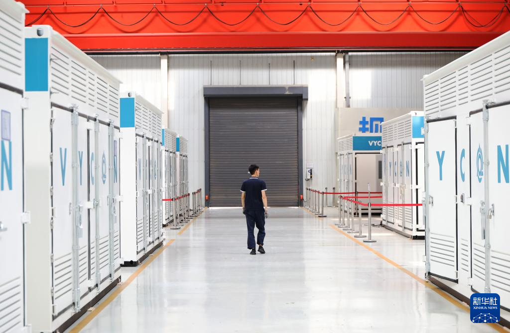 6月15日在大连融科储能技术发展有限公司拍摄的全钒液流电池系统。大连融科储能技术发展有限公司致力于全钒液流电池储能技术创新和应用探索,拥有国际、国内技术专利300余项,产品广泛应用于电网调峰、可再生能源并网、工商业微网等领域。