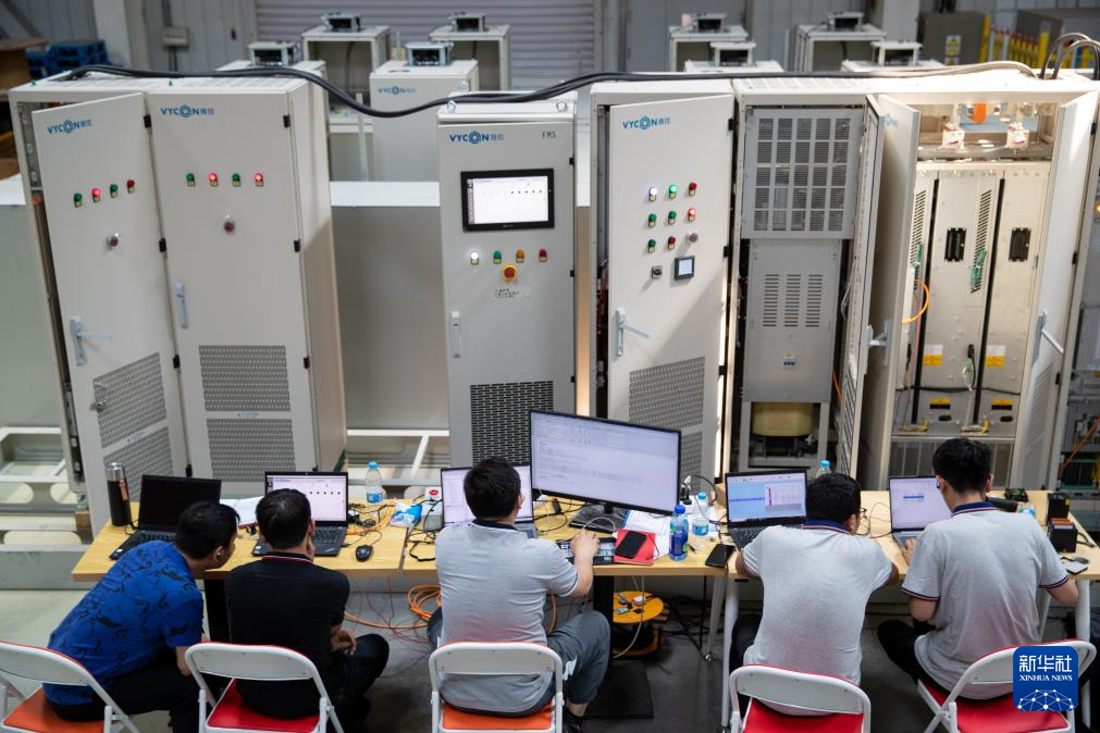 6月13日,工作人员在沈阳微控飞轮技术股份有限公司车间内进行测试工作。沈阳微控飞轮技术股份有限公司成立于2018年,深耕飞轮储能领域,以磁悬浮飞轮技术成为一家“独角兽”企业,其产品最高转速可达41000转/分钟。