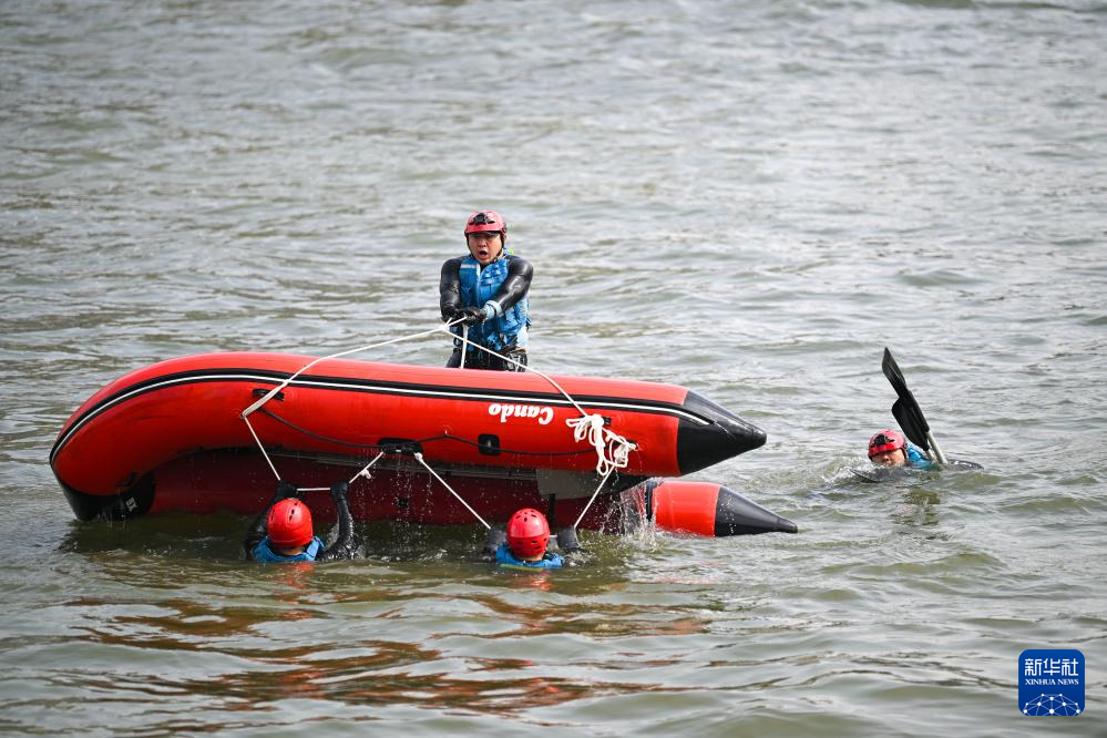 6月15日,救援人员进行翻舟自救技能演练。