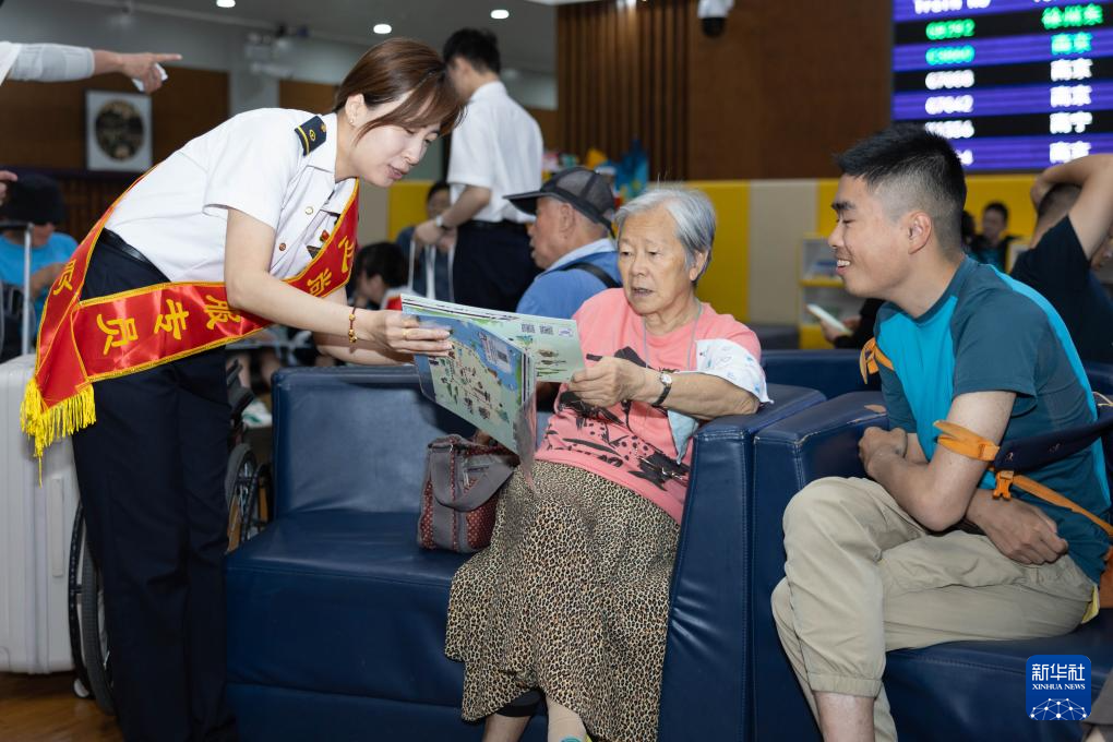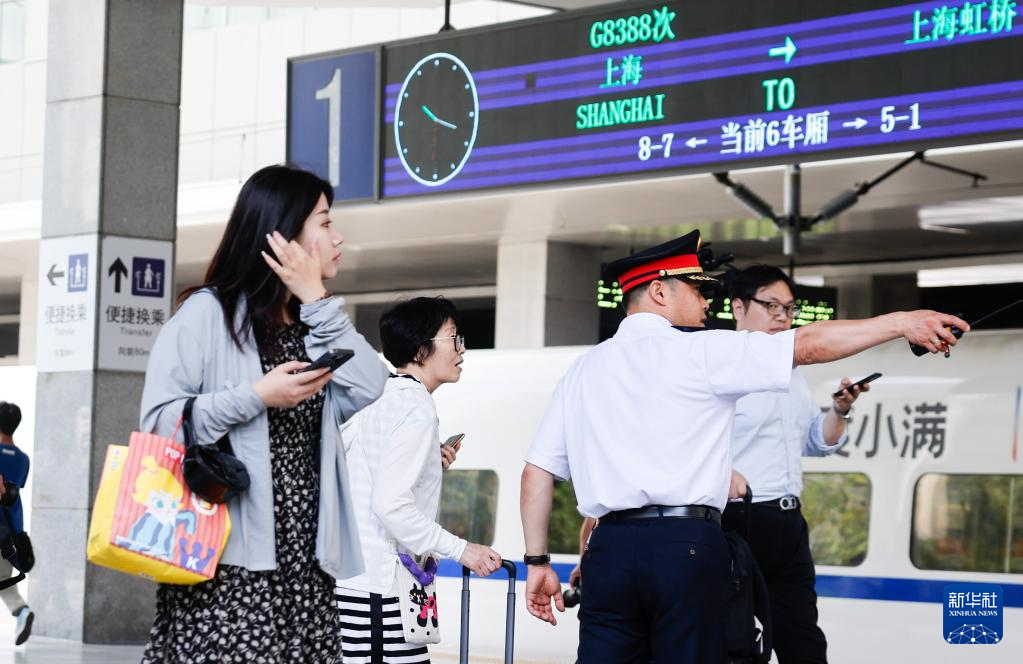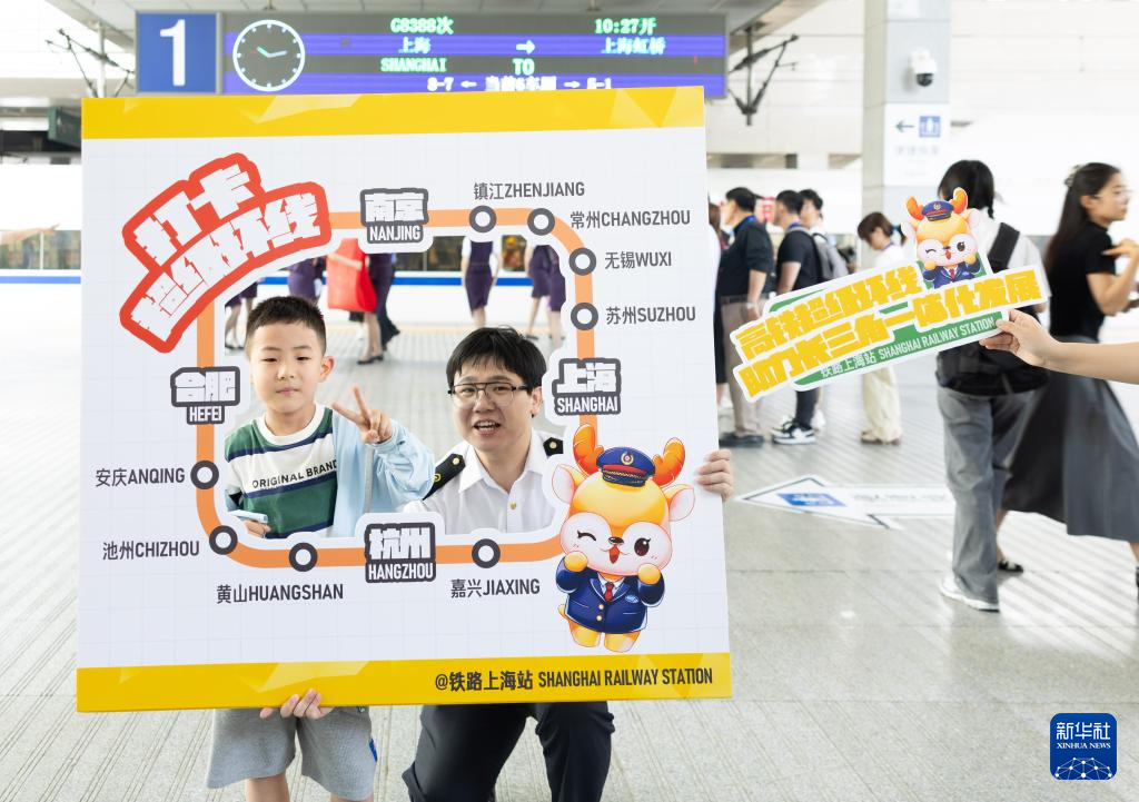 6月15日,铁路上海站工作人员向旅客介绍长三角超级“环线”列车。