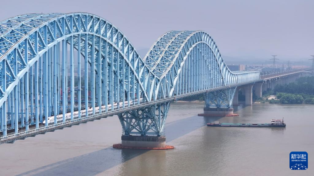 6月15日,超级“环线”列车通过南京大胜关长江大桥。