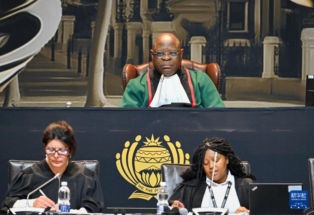 6月14日,在南非立法首都开普敦,南非首席大法官雷蒙德·宗多(上)主持新一届国民议会议员就职仪式和议长选举程序。
