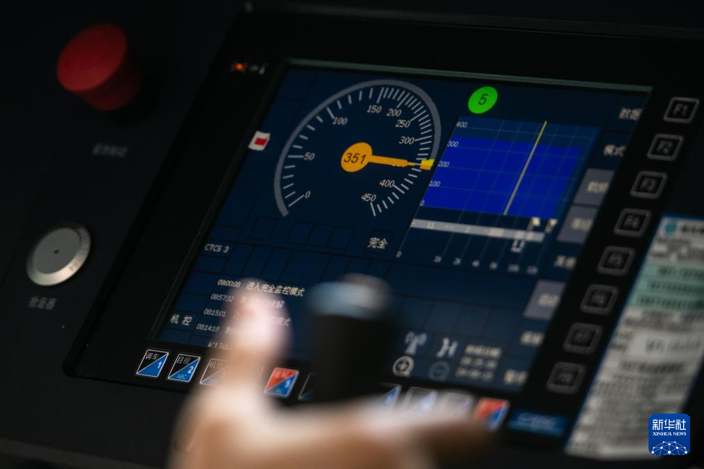 6月15日拍摄的G875次列车运行控制系统屏幕,数字显示列车已达时速351公里。