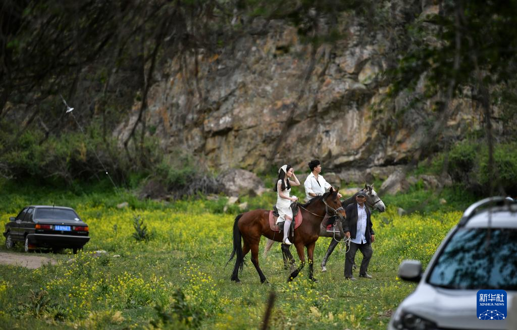 6月15日,人们在“夏牧场·游牧文化旅游节”活动上骑马游玩。