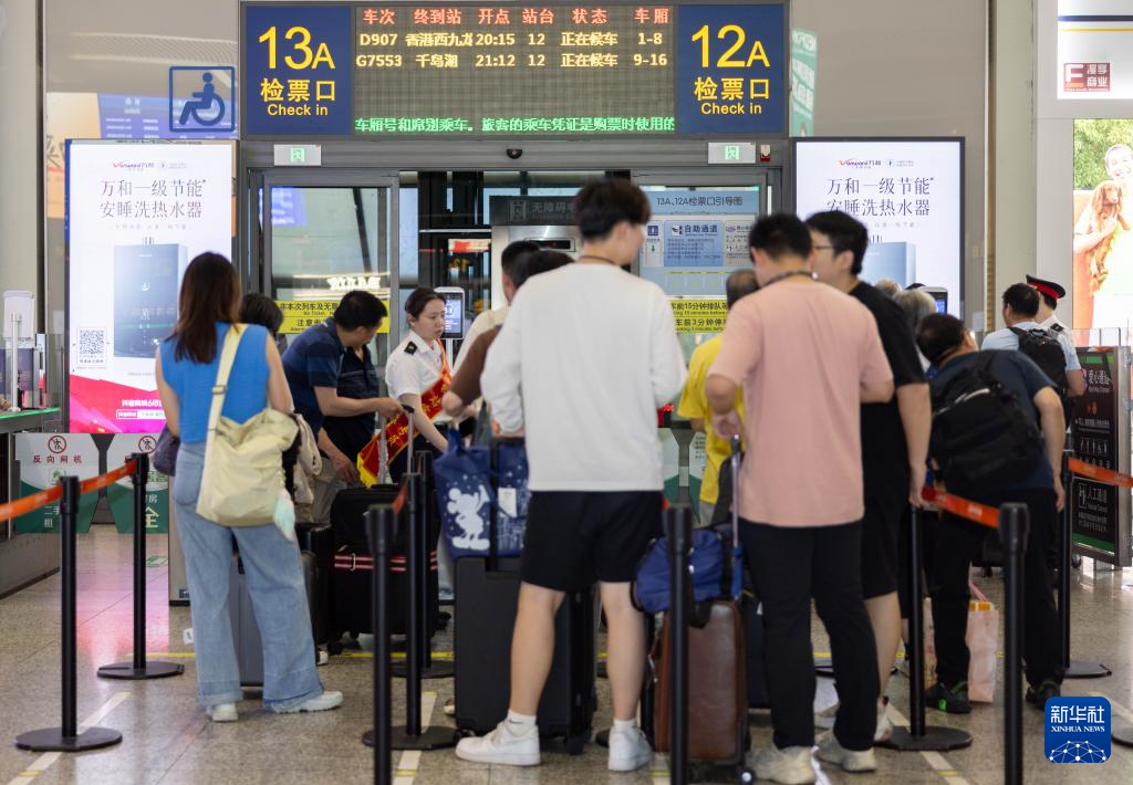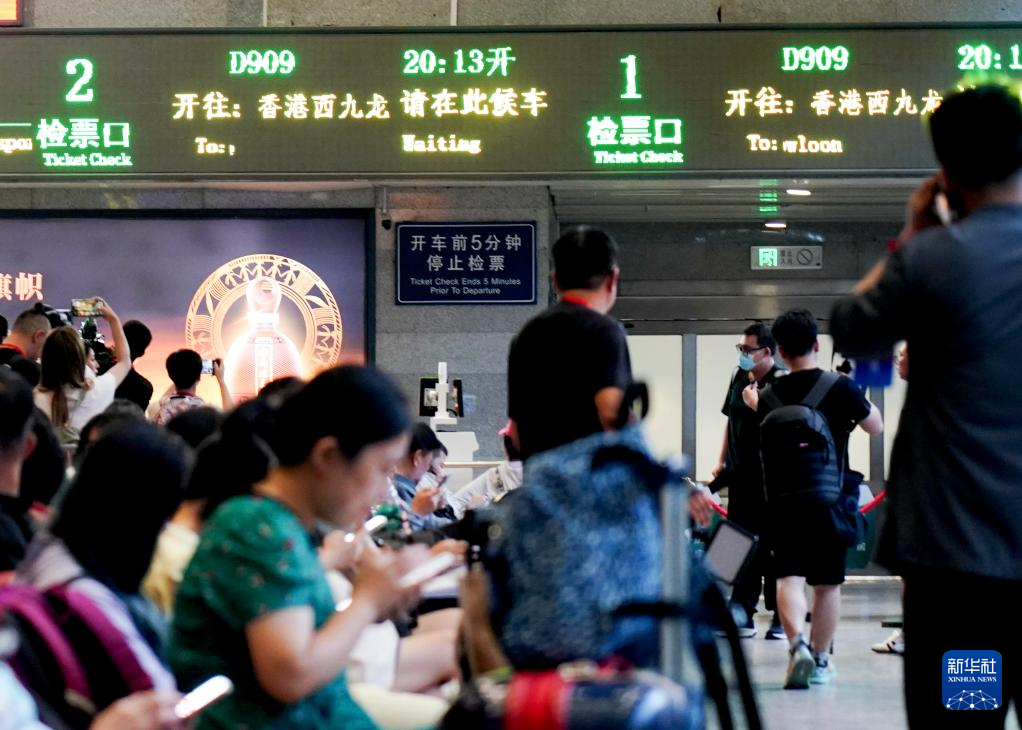 6月15日,在上海虹桥至香港西九龙D907次高铁动卧列车发车前,旅客在检票口排队候车。新华社记者 王翔 摄pagebreak
