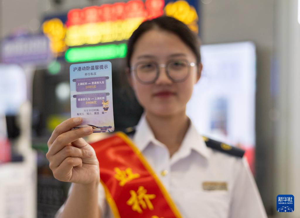 6月15日,铁路上海虹桥站工作人员展示沪港动卧温馨提示卡。新华社记者 王翔 摄pagebreak