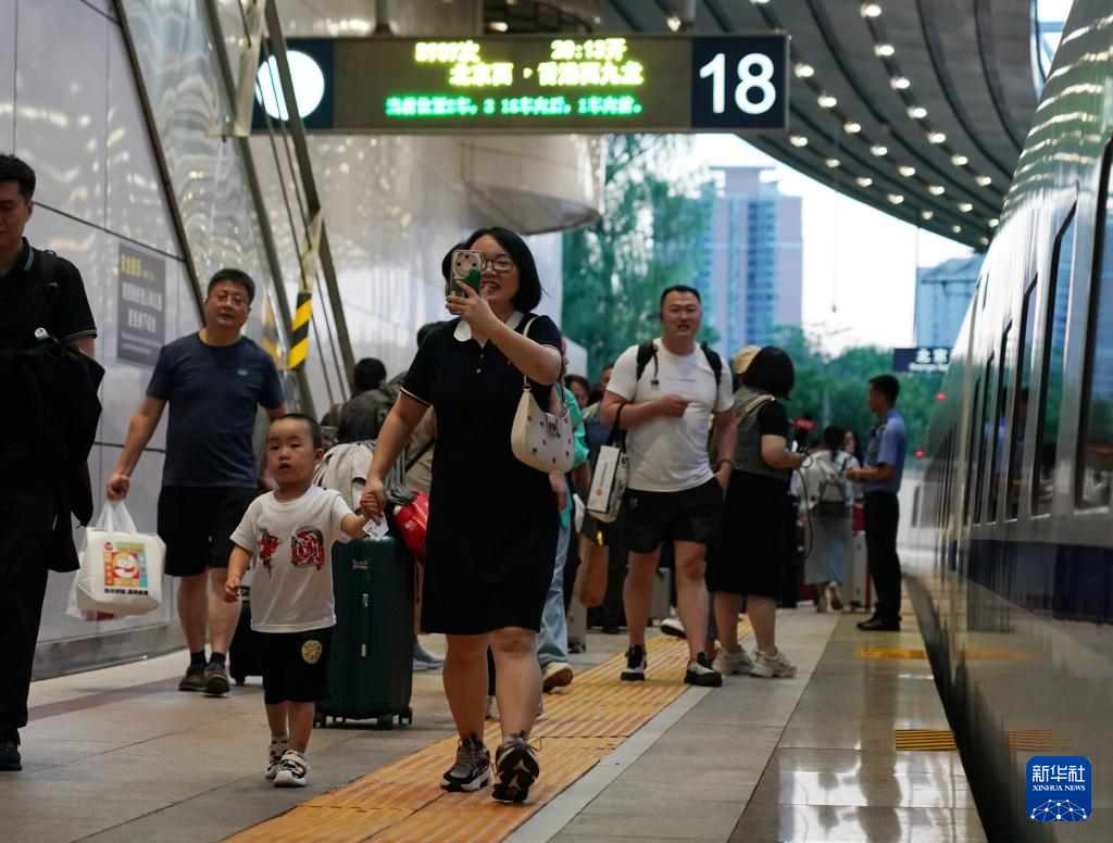 6月15日,乘客在北京西站乘坐北京西至香港西九龙D909次高铁动卧列车出行。新华社记者 张晨霖 摄pagebreak