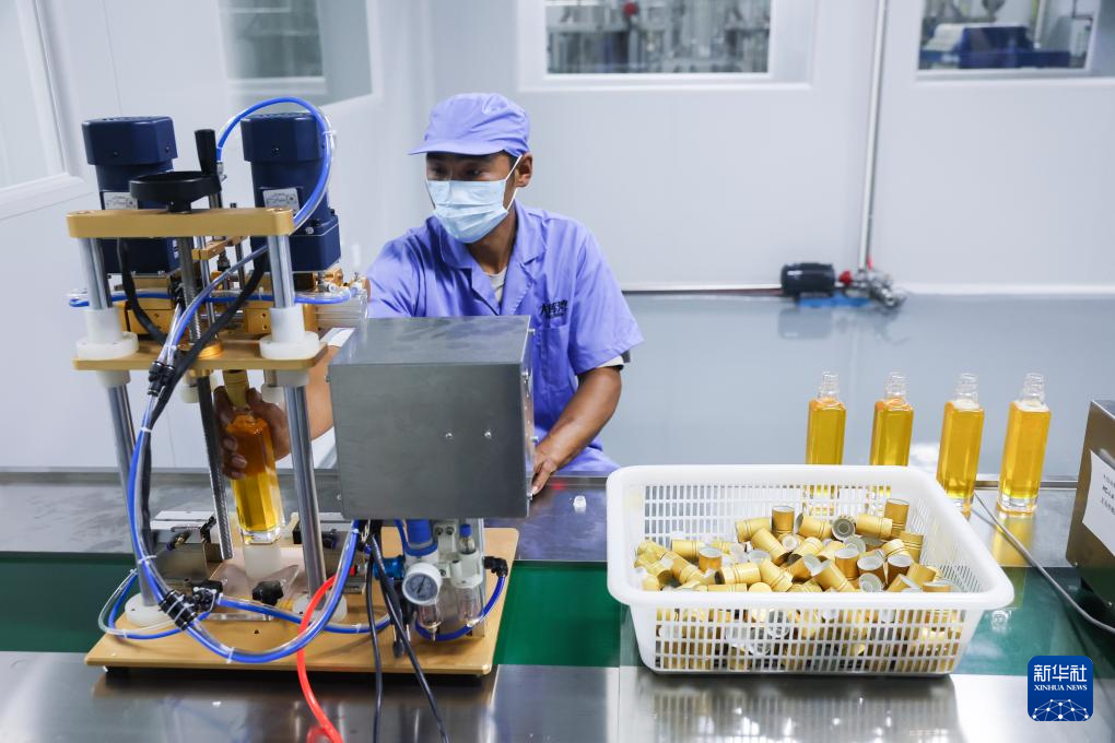6月15日,在位于建德市三都镇松口工业园的香榧油共富工坊加工车间内,流水线上正在灌装、打包香榧油。