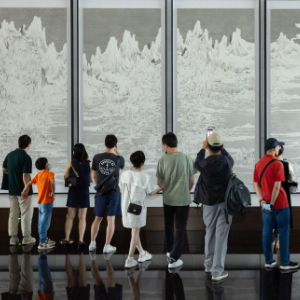 6月16日,市民在上海世界会客厅内欣赏艺术作品。