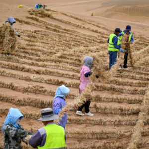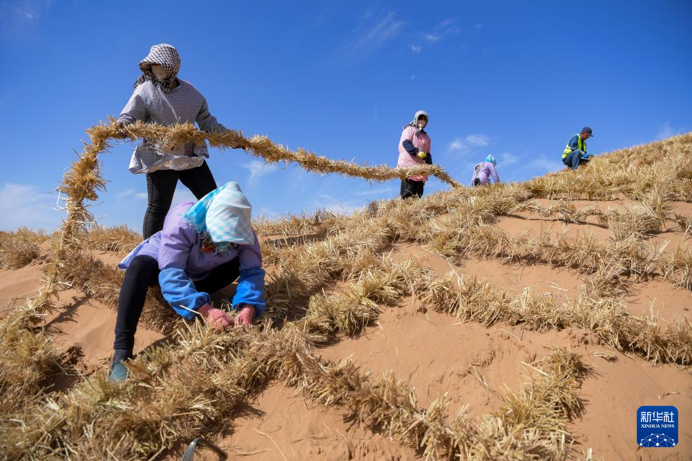 在风吹雨打日晒中,草方格寿命不过三年,有时还需要补扎维护。2019年,中国科学院西北生态环境资源研究院研究员屈建军团队研发出了升级版“治沙魔方”——“刷状网绳式草方格沙障”,固沙时间延长至5到6年,并可实现工业化量产。经过几年试验,如今开始逐步推广。