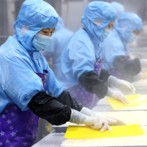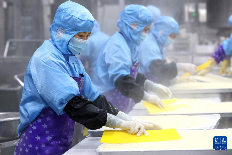 6月17日,在福建省古田县三朵银花(福建)食品有限公司,工人在生产车间加工银耳羹产品。