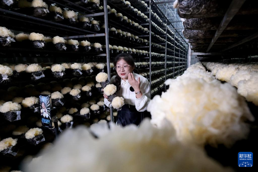 6月17日,在福建省宁德市古田县晟农无公害银耳基地内,主播直播销售新鲜银耳。