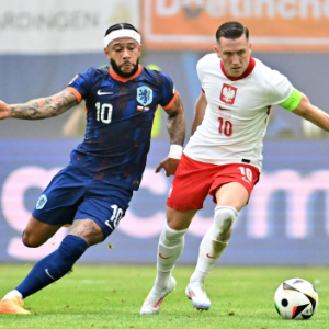 当日,在德国汉堡进行的2024年欧洲足球锦标赛小组赛D组首轮比赛中,荷兰队2比1战胜波兰队。