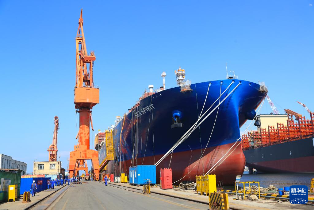 6月15日,工作人员在中国船舶大连造船公司忙碌。