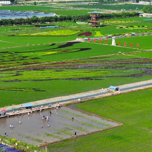近日,在位于宁夏银川市贺兰县的稻渔空间乡村生态观光园里,巨幅稻田画进入最佳观赏期,吸引游客前来观赏。